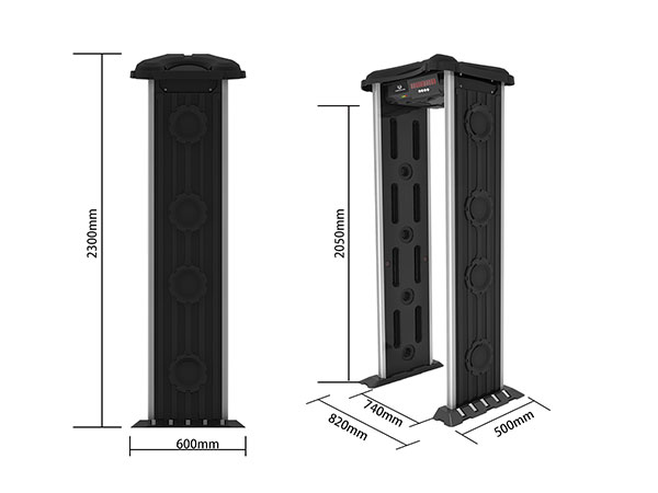 YJY-300ABS防門安檢門整體靈敏度100級可調:級別越多,靈敏度調整細致,可排除隨身攜帶金屬物。